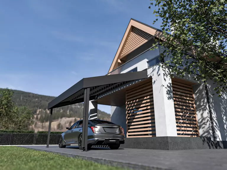 PF-GRUPPE Stahlpultdachcarport - STUK - Präzision, die in jedem Detail steckt